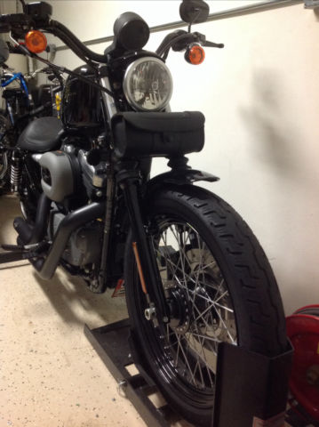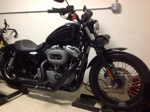 This 2008 Nightster has been garage kept since day one. all service done by dealer. adult owned with very very low miles. you will not find a nicer Nightster for sale anywhere. This bike is barely broken in. spotless and ready to ride. Completely stock accept for the black Vance and Hines spots and leather bar bag. Bike sounds great. runs great. and looks great. ONE OWNER - with Cover DIMENSIONS U. S. UNITS Length 85. 8 in. Seat Height Laden 25. 3 in. Unladen 26. 3 in. Ground Clearance 3. 9 in. Rake Steering Head/Trail 29. 6° / 4. 60 in. Wheelbase 60. 0 in. Fuel Capacity 3. 3 gal. Oil Capacity 3. 6 qt. Weight Dry Weight 545. 0 lbs. Running Order 562. 0 lbs. POWERTRAIN Engine Air-cooled. Evolution® Displacement 73. 2 in. Bore x Stroke 3. 50 in. x 3. 81 in. Engine Torque 79. 0 ft. lbs. @ 4000 rpm Fuel System Electronic Sequential Port Fuel Injection (ESPFI) Compression Ratio 9. 7:1 Miles per Gallon ESPFI 57. 0 hwy / 42. 0 city Primary Drive Chain. 57/38 ratio Gear Ratio (overall) 1st 9. 315 2nd 6. 653 3rd 4. 948 4th 4. 102 5th 3. 517 6th N/A WHEELS/TIRES Wheels Front Black. Laced Rear Black. Laced Tire Size Front 100/90-19 57H Rear 150/80B16 71H ELECTRICAL Instruments Electronic speedometer w/ odometer. handlebar-mounted; Time-of-day clock on odometer; Dual resettable tripmeter; low fuel indicator light; low oil pressure indicator light; engine diagnostic readout; LED lights Indicator Lamps High beam. neutral. low oil pressure. turn signals. engine diagnostics. low fuel warnings. security system (optional) CHASSIS Brakes Dual-piston front. single-piston rear Lean Angle (per SAEJ1168) 30. 0° / 29. 0° Exhaust System Chrome. slash-cut exhaust w/ dual mufflers COLOR OPTIONS Vivid Black; Suede Blue Pearl and Vivid Black; Olive Pearl Denim and Black Denim; Brilliant Silver Denim and Black Denim; Mirage Orange Pearl and Vivid Black. OPTIONAL EQUIPMENT Security System Option UNIQUE FEATURES Side-mounted license plate; chopped rear fender with black supports; stop-turn-tail lights; black 19-in. laced steel front wheel. black 16-in. laced steel rear wheel; black front fork gaiters; black finish hand and foot controls; chopped front fender with black brackets; belt guard with lightening holes This 2008 Nightster has been garage kept since day one. all service done by dealer. adult owned with very very low miles. you will not find a nicer Nightster for sale anywhere. This bike is barely broken in. spotless and ready to ride. Completely stock accept for the black Vance and Hines spots and leather bar bag. Bike sounds great. runs great. and looks great.