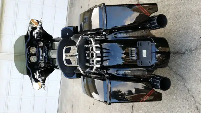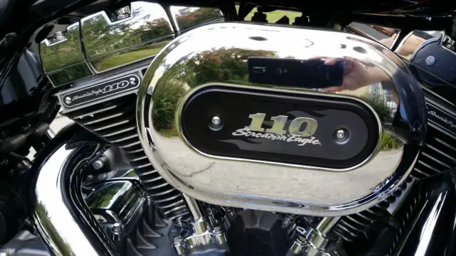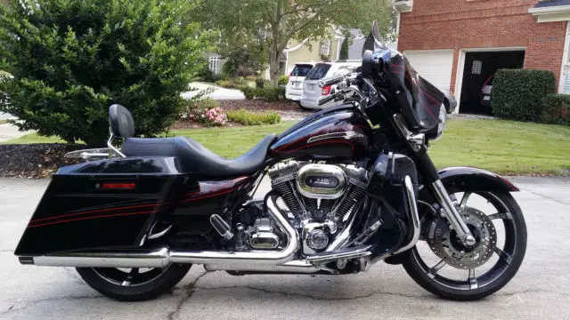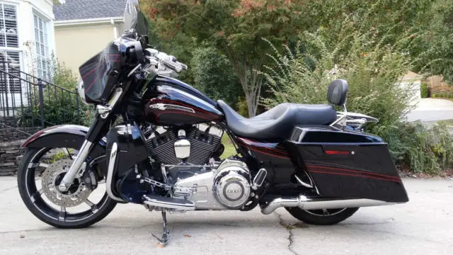 Bike is used only by an experienced motorist and always kept clean in a garage giving it a new bike looks and operation. Engine is tuned up by a HD Dealer with huge Horse Power and Torque. Heads ported and polished with 2:02/1:94 valves installedT-man performance 662 camsHPI throttle body with high flow injector kitDom top pistonsAdjustable push-rodsK+N Air cleanerScreaming Eagle TunerFullsac performance 2-1-2 ceramic coated head pipe with original chrome covers. Fullsac 2. 25" barrels installed in original mufflers with factory looks and superb performance. Pioneer bluetooth system with CD and XM radio connected into handlebar controls. ARC audio 500W amp 6 focal speakers. Progressive mono front suspensionDaymaker LED Headlight Only about 1000 Black&Crimson CVO Street Glides were manufactured which makes the bike a unique ride together with the ultimate power and torque. Bike comes with the original CVO cover. 2 alarm keys and side bag inner bags.