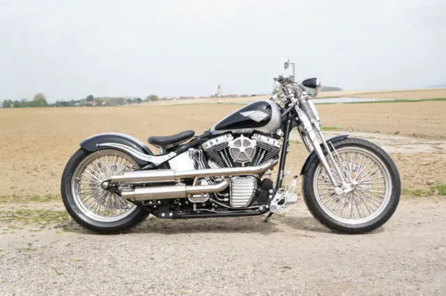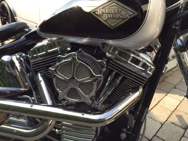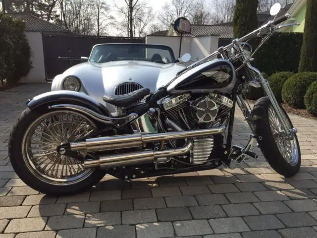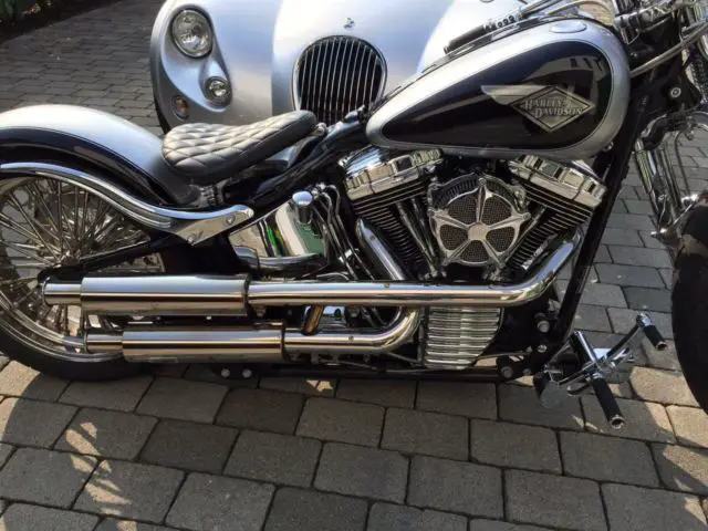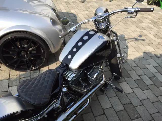 FLSTSI 2003 complete conversion. Only the best parts were installed: TTS Big Spoke Wheels 3x19 and 5. x18 with Metzeler Tires front 120 rear 200 Thunder Bike Pulley . Tankumbau with Motogadget speedometer. cleaned-up. relocated fuel pump. tank cover special order. Handlebars Custom-made V-Team Stainless Steel with PM Contour handlebar. Foodpegs HD Billet advanced. All latches and handles PM Contour. All lines and trains steel braided. . Thunder Bike Airride. RSD RSD rear fender and billet fender. front fender custom-made. removable. License plate holder stainless steel custom made. Engine tuning with SE big bore kit and SE camshaft incl. New bearings. Super Tuner software. RSD air filter. Jekyll + Hide Bomb exhaust system incl. Manifold. Performance chart available. Seat. passenger seat and swing bag special order. Paint black and silver Vintage emblem. The conversion was carried out in 2014 by a HD professional. Mileage since the completion approximately 1000 miles. When selecting parts greatest emphasis was placed on perfect driveability and ergonomics. I HAVE A PRICE IN MY MIND TO END THE AUCTION EARLY AND SELL IT FASTER. I RESERVE THE RIGHT TO END THE AUCTION IF THE PRICE IS MET.