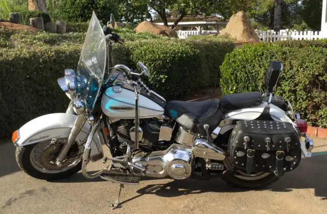 1993 Harley-Davidson Heritage Softail Classic Newly Rebuilt Engine S & S Parts1400 Miles on Rebuilt EngineThis is a very nice 1993 Harley Heritage Softail that belonged to my 93 year old father. It's white with blue pin stripe. The bike has always been garaged. He never rode it. just started it and spent money on it. The bike has:Newly Rebuilt Motor with S & S PartsNew ClutchNew Drive BeltNew Hi Torq StarterS & S Oil PumpStg. 1 Carb KitNew BatteryNew Thunder HeadersNew Metzler Front TireLike New Dunlop Rear TireMemphis Shades Windshield (Blue Tint)New Custom Leather Upholstered SeatNew Custom Made Saddle Bags (Xtra Capacity)New Buckhorn Handle BarsNew Kuryakyn GripsNew TachometerNew Chrome Tool Boxes (One on each side)Hi Intensity Spot LightsThe motor has only 1400 on the newly rebuilt engine. which I put on for him. I also spent $800 having the bike all checked out to include changing all fluids. performed by Dave Oshman Motor Machine. Alpine. CA; who also built the engine. I'm sure that I've probably forgotten something so feel free to ask questions. Clean title in hand.