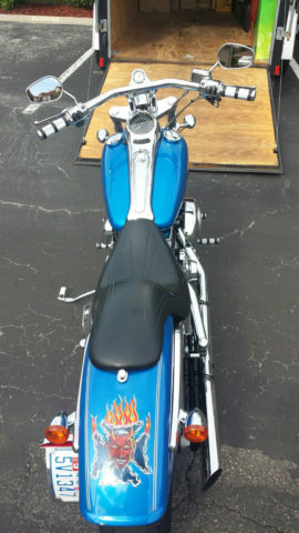 I am selling a 2004 Harley Davidson Deuce custom electric blue with custom paint and design. This bike has it all…. it is a Stage 3 set up with a power commander. bored out to 100 CI. polished and ported heads. race cam. lifters and more . racked fork. a Le pera custom seat with match stitch work. all braided cables. Python drag pipes . drag handle bars with tack. extended forward controls. The list goes on. If you have more question just contact me. !