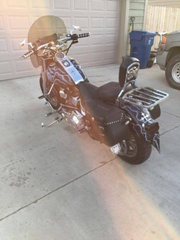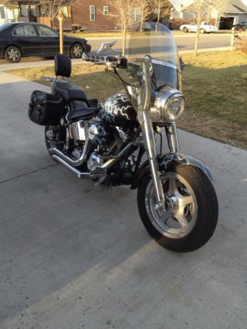 Here is the entire skinny on the FATTY. When it was ordered new. it came with the 98ci ($1. 00 upgrade) and had every custom part added possible to it. (The original owner was the owner of Yellowstone Harley. so you get the idea. ) at 60K miles. the top end was redone. bored and stroked. making it OMG fast. (@$2. 00 in parts and labor. ) The odometer reads 90K miles now. but runs like new! insurance value on the bike is ($15. 23. 50) So starting price is $10. 00. This bike has been to Daytona bike week twice. Sturgis 5 times. and the Beartooth Rally 10 times. Here is an idea of what has been done to the bike: Kelly Blue Book is $8. 40 for a base model Fatboy. add engine upgrade $3. 00 and value is $11. 40 (The following is cost of parts new added to this bike. this does not include labor. )Cutom lightning on Mercedes Black paint by Nolan Farr at McGinleys of Bozeman - $3500Chrome front end - $2. 49Custom mag wheels - $1. 18Over size saddle bags - $679Gorilla Thunder 2 3/4" exhaust - $637Forward controls - $489Chrome padded backrest w/ rack - $299Windshield - $270Lepera gel seat w/ custom lightning stitching - $230Chrome swing arm - $160Z handlebars - $100Cat eye blinkers - $100Axe blade mirrors - $70Windo bag - $69LED kit - $69Highway pegs - $67ISO Grips - $61LED taillight - $60Chrome belt guard - $60Chrome linkage - $50Chrome horn cover - $30Total of upgrades and extras new = $13. 67I always figure about 1/2 value of any add-ons $13. 67/2= $6. 83. 50 add this to KBB value and you get insurance value of $15. 23. 50So I think it's fair to start the bidding with no reserve at $10. 00 ($500 deposit due 24 hours upon end of auction. balance due within additional 48 hours and shipping or pickup is buyers responsibility within same 48 hours. )