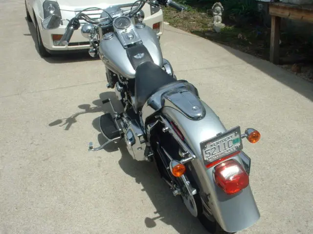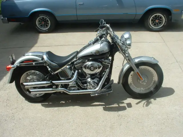Here is a great opportunity for someone. I'm selling my '03 Fatboy. Not because I don't enjoy riding. but because I just don't have the time to enjoy it like I should. This is the Black and Silver Collector's Edition that is highly sought after. It is a beautiful bike. It has Screaming Eagle pipes. lots of chrome. and a Screaming Eagle seat. This is a single saddle with the long chrome tail on it that really sets this bike apart. It makes the bike set down low. The seat alone is over a thousand dollars. This is practically a new bike. It has less than 4400 miles on it. see odometer in pictures. Included are the original 100th anniversary seat. 100th ann. back rest. and 100th ann. hard locking saddlebags. All with anniversary badges. Also included is a windshield. cover. and a trickle charger. It's a great ride. I've decided to give up riding so. my loss is a great deal for someone. Might as well be you!!!I'm asking $13. 00 but cash talks. I would possibly take some nice older colts or Winchesters in trade [must be very nice]. The bike is located in Irvine. Ky. and I welcome anyone seriously interested to come check it out. You won't be disappointed. Any questions. please ask. I can be reached at 1-859-582-2066 anytime. Just don't get too technical. I'm not a technician. I just ride it. It runs great. Thanx for viewing my auction. David {marblehound1}