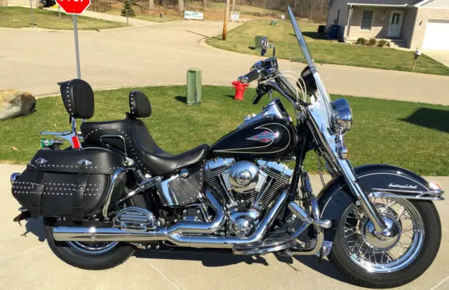 Stunning Harley Heritage Classic for sale. I am the original owner and took great pride in riding. caring for. and upgrading my Harley Davidson. I am now retired and have decided its time to switch over to 4 wheels. This is an extremely well maintained and meticulously upgraded motorcycle and I will miss it. Please call for questions and thank you for consideration. Jac2009 Harley Davidson Heritage Softail ClassicColor: Vivid Black; Mileage: 43. 00Jac: 309-Two87-Seven400NADA "stock" price: $11. 45Add ons as listed below. $14. 14Total NADA and Add on's $25. 60Asking price. $16. 95 negotiable (no low balls please). Full Factory Warranty to June 2016. All maintenance and add ons completed at Cozaihrs HDAll receipts for maintenance and add ons. Impecably cared for and maintained. Selling bike because I'm retired and its time for 4 wheels for me. Title in hand. funds must clear prior to deliveryBike kept inside house during off season. . . not garaged!Many many many many take offs if desired for freeExtra set of bags also for free if desired. Original owner. local pickup or shipping can be arranged (take offs too expensive to ship )Price Prices include labor in some cases. $1. 30 103 Cu. In?. Conversion with 55°Cams$1. 95 Stage 1 Air kit. Super Tuner & Dyno test$850 Custom chrome Vance & Hines Exhaust$724 Diamondback brake & throttle cables $650 Chrome Swing Arms$601 Chrome forks$540 LRD Headlamp$520 Chrome passenger floor boards with inserts & mounting kit$505 Combo speedometer & tachometer with colored LED backlight$503 Softail Seat with rider backrest$460 Quick detach King size windshield with bag$430 Smoked quick detach wind shield with bag$390 LED Passing lamps$390 Chrome center stand$360 Electric throttle lock cruise control$350 Chrome primary cover$320 Quick detach rear bag kit$315 Saggy Baggy inserts$280 Chrome fastened covers$260 Chrome Engine guard+$260 Custom Heritage Linkage$240 Chrome floorboards with inserts$240 Chrome bag guards$240 Chrome Air cleaner cover$210 Chrome Highway pegs$205 Air Horn$160 Chromed voltage regulator cover$155 Chrome Electronic dipstick & temp guage$150 Softail Sport luggagge rack$130 LED turn signals front & back$130 Chrome passender grab rail kit$120 Chrome belt guard$105 Rear fender chrome rail$105 Front fender chrome rail$92 ISO grips & throttle boss$80 Chrome rear sprocket cover$60 Studded leather crotch heat shield$60 Front fender skirt$60 Rear leather mud flap$39 Chrome insurance & registration billet$14. 14 Total add-on & conversions