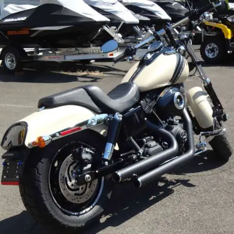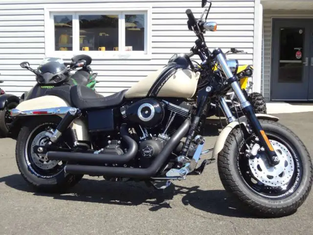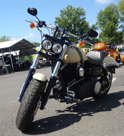 2014 Harley Davidson Dyna Fat BobBeautiful bike with LOW miles**Financing as low as 2. 49% for 60 months for those who qualify** DescriptionThis bike also has: Upgraded exhaustForward controls and pegsHigh flow Harley Davidson air intakeHand warmers** comes with the stock pipe. pegs. and controls** The 2014 Harley-Davidson® Dyna® Fat Bob FXDF model is a Dark Custom™ cruiser with a big motorcycle feel. The Harley® Fat Bob model features a powerful air-cooled Twin Cam 103™ Harley engine with six-speed Cruise Drive® transmission. providing more performance power for passing. hill-climbing. and riding with passenger and cargo. For the custom style you want. the Fat Bob model motorcycle's beefy drag handlebar is truly reminiscent of an aggressive quarter mile monster. And with the wires routed through the steel. you get a clean. minimal look with nothing standing in your way of the open road. Add to that the wide stance and 16-inch front wheel. and you have a cool fat custom look with a powerful big twin engine. If you like the style of the blacked out. Dark Custom street brawling motorcycle. the Fat Bob was built for you. From the aluminum triple clamps and battery box cover to the headlight trim ring and rear shock covers. this thick-cut. menacing bad boy is blacked out from top to bottom. nose to tail. The high performance coil-over rear chrome shocks give a smooth ride and custom look. Learn more about this bike with a big motorcycle feel and the other Harley Dyna motorcycles. Also check out the Street Bob®. the Super Glide® Custom. and Wide Glide® motorcycles. SpecsManufacturer Harley-DavidsonModel Year 2014Model Dyna® Fat Bob®Price *$14. 00. 00Color Sand Cammo DenimMiles 1877DimensionsLength 94. 5 in. (2. 00 mm)Weight Dry: 673 lbs. (305 kg)Running Order: 706 lbs. (320 kg)Ground Clearance 4. 9 in. (125 mm)Wheelbase 63. 8 in. (1. 20 mm)Seat Height Laden: 26. 1 in. (663 mm)Unladen: 27. 2 in. (690 mm)EngineEngine Twin Cam 103™Displacement 103 ciBore x Stroke 3. 87 x 4. 374 in. (98. 4 x 111. 1 mm)Torque 98. 8 ft. lbs. (134 Nm) @ 3. 00 rpmCompression Ratio 9. 6:1Fuel System Electronic Sequential Port Fuel Injection (ESPFI)Fuel Tank Capacity 5 gal. (18. 9 l)MPG Rating 42 mpg combined (5. 6 l/100 km)Cooling AirExhaust Chrome. "Tommy Gun" 2-1-2 collector with dual mufflersOil Capacity 3 qt. (2. 8 l)DrivetrainTransmission 6-speedPrimary Drive Chain. 34/46 ratioGear Ratio 1st: 9. 3112nd: 6. 4543rd: 4. 7934th: 3. 8825th: 3. 3076th: 2. 79Brakes/Wheels/TiresBrakes Front: 4-piston fixedRear: 2-piston torque-free floatingWheels Front & Rear: Machined. aluminum slotted discTires Front: 130/90B16 67HRear: 180/70B16 77HElectricalLighting High beam. directional light bar. neutral. low oil pressure. engine diagnostics. turn signals. security system (optional). 6-speed. low fuel warningsInstrumentation Tank-mounted electronic speedometer with odometer. time-of-day clock on odometer. dual tripmeter. RPM / gear display. fuel gauge with low fuel warning light and countdown feature. low oil pressure indicator light. engine diagnostics readout. LED indicator lights. 6-speed indicator lightOperationalRake 29°Trail 4. 92 in. (125 mm)Standard FeaturesThe all-new Fat Bob® motorcycle. Blacked-out finishes. slash-cut mufflers. one-of-a-kind tank graphics. Surly attitude hits a new high. NEW - Slash-cut rear fender with LED tail lamp NEW - Ergonomic. slim. sculpted 2-up seat NEW - Blacked-out. Twin Cam 103™ engine NEW - Black. machined aluminum slotted disc wheels with laser-engraved graphics NEW - Blunt-cut mufflers*Seller will NOT arrange shipping! All transportation must be arranged by the buyer!*