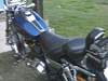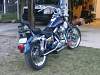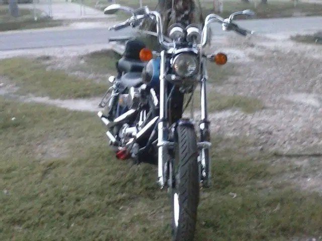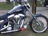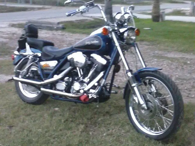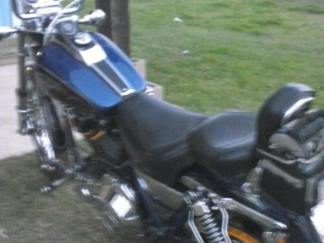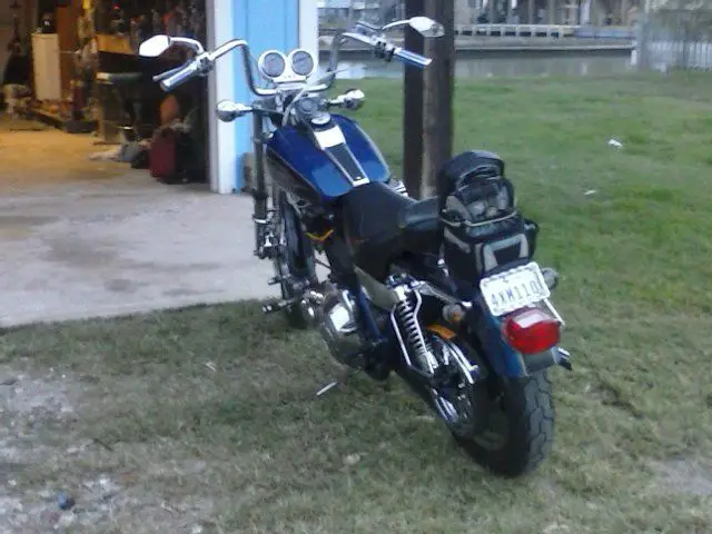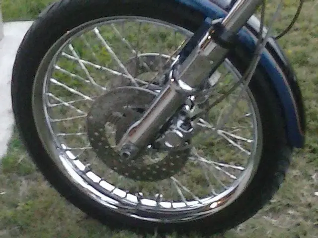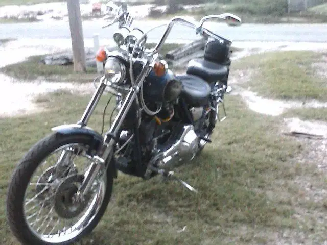 This bike has a dual disc . inch over stock extended front end with a new AVON Venom tire on a new chrome 21 inch "Smoothie " wheel . new Mini ape handle bars. 16 inch chrome center line in rear with almost new Dunlop sport elite tire on it . I recently installed a new DYNATECH all adjustable electronic ignition with matching single fire coil and wires . (power increase was very evident !) All original paint except for pin striping that was added later. (note that frame is same color as sheet metal . very cool and uncommon custom touch !) Fairly new Mustang flip up leather seat in perfect condition and quite comfortable. Billet aluminum forward foot controls. Bike was set up for a long legged or taller person then my short 5 ft. 6 inch frame . I m pretty stretched out when riding it . I would love to keep this bike but fell in love with another that I now need to pay for . This bike is VERY fast and lightweight and runs perfectly and is all legal and ready to roll ! A ONE OF A KIND CLASSIC HEAD TURNER THAT WILL STRAIGHT LAY IT DOWN !!!! ( Have since removed stickers. )