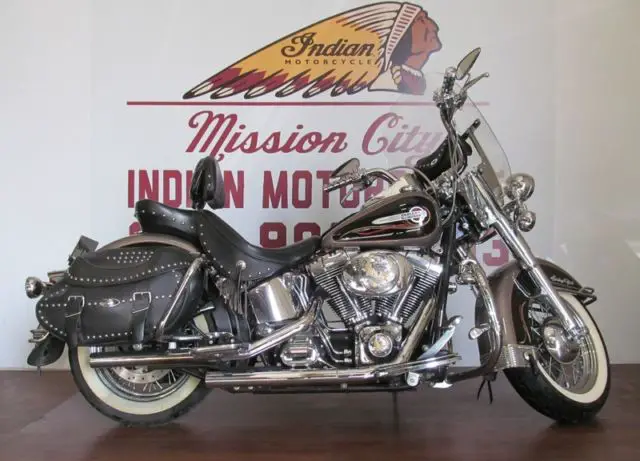 Mission City Indian Motorcycle | 830-981-2453 | We Buy Bikes! 2004 Harley-Davidson® FLSTCI Heritage Softail Classic Two Tone Loaded Low Miles Disclaimer It is the customer's sole responsibility to verify the existence and condition of any equipment listed. We try our best to thoroughly describe the vehicle and its features. Please contact us prior to bidding on the vehicle if you have any questions about the vehicle. We are NOT responsible for misprints on prices or equipment. It is the customer's sole responsibility to verify the accuracy of the prices and equipment with the dealer. Pricing is subject to change without notice. Terms of Sale Overview This vehicle is also for sale on our lot and other advertising sources. We reserve the right to end this listing at anytime should the vehicle no longer be available for sale. The following terms of sale apply to all of our auctions. Payment Terms: The successful high bidder will require to submit a $500 non-refundable deposit within 48 hours of the close of auction to secure the vehicle. Understanding that the vehicle will remain available for purchase until the deposit has been secured. Buyer agrees to pay remaining balance due (plus applicable fees and taxes) within 5 business days of the close of the close of the auction. All financial transactions must be completed before delivery of the vehicle. Payment Methods: Cash (in person). certified check. bank transfers. or 3rd party financing. Fees and Taxes: Out of state buyers are responsible for all state. county. city taxes and fees. as well as title/registration fees in the state that the vehicle will be registered and a documentation fee of $125. Mission City Indian Motorcycle 28611 Interstate 10 W Boerne. TX 78006 | 830-981-2453 830-981-2453 - We Finance & Ship
