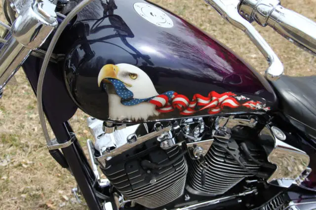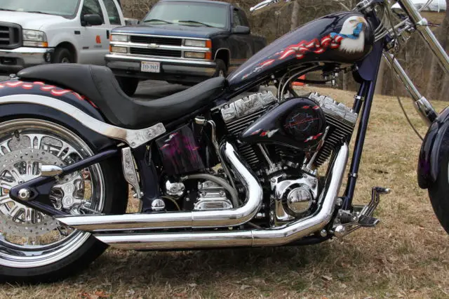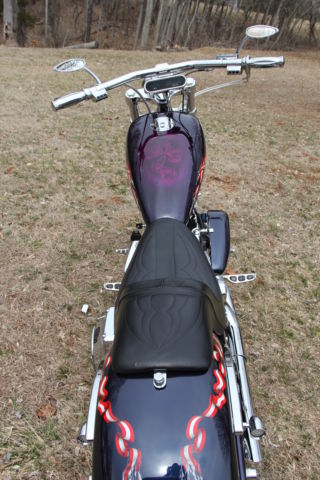 I AM LISTING THIS FOR A FRIEND PLEASE CALL OR TEXT RICKY KNOWLES FOR ALL QUESTIONS THANK YOU FOR LOOKING AND GOOD LUCK!!! THIS HARLEY DAVIDSON IS TOTALLY BUILT FROM THE FRAME UP WITH ON BOARD AIR RIDE SUSPENSION. THE NECK WAS CUT AND RAKED OUT RESULTING FOR THE REBUILT TITLE. THE WHEELS AND BRAKE CALIPERS ARE PERFORMANCE MACHINE. THE REAR TIRE IS A 240 X 18 AND THE FRONT TIRE IS A 21 INCH. ALL THE WIRES ARE HIDE IN THE FRAME ALL HOSES ARE STAINLESS STEEL BRAIDED. THE BUILDER OF THE BIKE HAD SPECIAL TURN SIGNALS AND ALL HAND CONTROLS MADE AND CHROMED. THE ENGINE IS A 117 CID BALANCED AND WELDED. -MAN PERFORMANCE 650 LIFT CAMS. &S CARBURETOR. nbsp; DIAMOND CUT JUGS . AMPSON BIG GUN SHORT SLASHER PIPES. THE PAINT JOB COST $5000 THE PICTURES SPEAK FOR IT SELF. CALL ME AT 434-941-0533 FOR MORE INFO