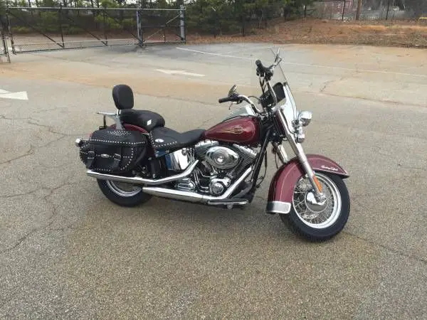 2008 Harley Davidson Heritage Softail. Very clean. BRAND NEW Dunlop Harley Davidson tires. Just fully serviced less than 5 miles ridden since tires and service. All stock. Has removable windshield. Needs NOTHING but a rider. No drips. leaks. or any issues whatsoever. Very well maintained. Owned by a 75 year old man who has chosen to give it up due to back surgery. Clean Title in hand.