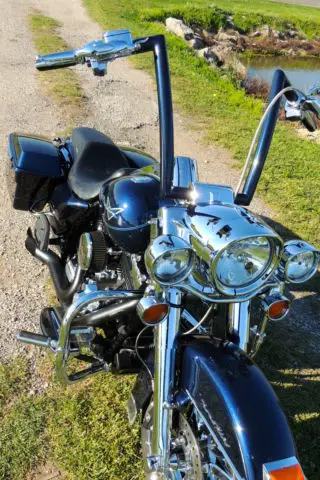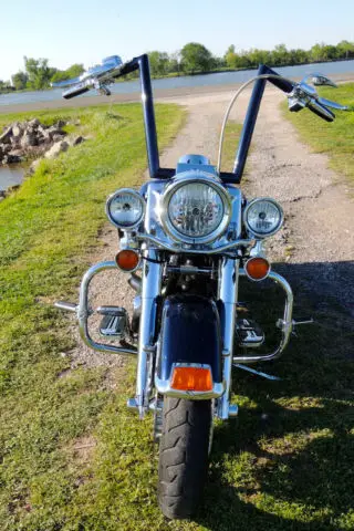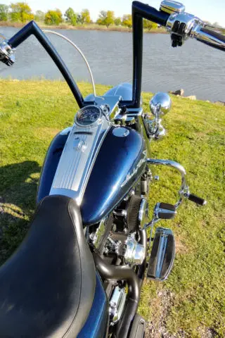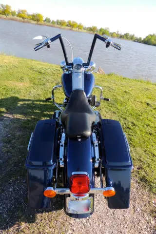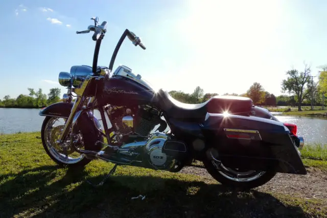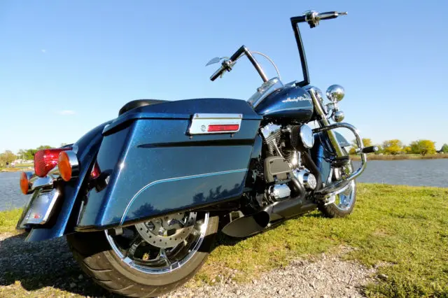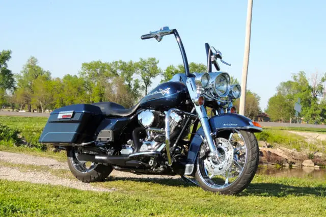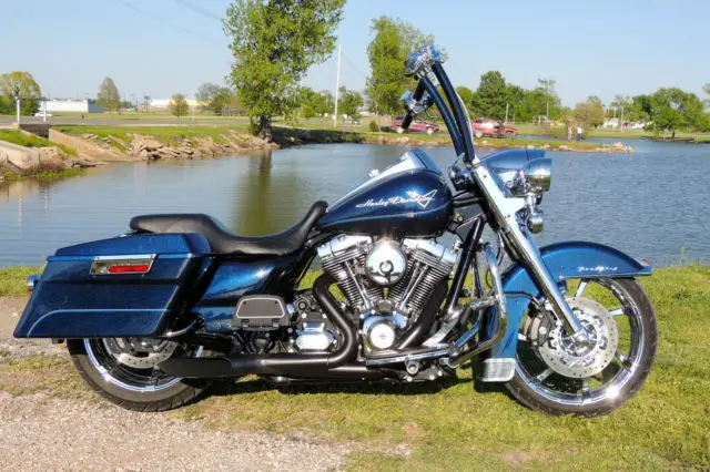 This Harley Davidson Road King is a great motorcycle and needs nothing. It has a lot of upgraded parts and custom parts almost too much to list. Some of the key items that were added to this bike is: CVO Front and rear wheels with matching rotors. CVO speedometer. CVO grips. CVO floorboards and passenger boards. nbsp;Chromed-out front end including lowers. crash bar and pegs. Custom one-off built ape hangers that is powder coated paint matched to the bike. The bars are completely internal except for the clutch cable but everything else is ran internal for a completely clean look. Custom built 2 into 1 exhaust that not only sound mean but they perform as well adding 12-15 horsepower with the heavy air breather and download. Badlander seat. and the bags are detectable. Also comes with the oversize 3 point detachable backrest. Also comes with a detachable windshield. The rear tire and brakes have just been replace 1000 miles ago. The bike also has been to every service that HD recommends you do. Also If you live in the Kansas City area the bike comes with a maintenance package that has 3 bike services left along with 3 extra oil changes and a free front tire only good at WORTH HARLEY DAVIDSON. Unfortunately I have to sell this bike due to a divorce and I am going to lose my butt off on this bike being that I have almost 30k in the bike. I absolutely love this bike and have taken it everywhere which makes me upset that I have to sell it. It is your win and my lost. One of the side covers that goes in front of the bag came off on a ride and is now zip tied on but I will order a brand new one from harley once the bike is paid for on my dime. If you are out of state I do have access to a motorcycle shipping company but it will be on your dime. US Shipping ONLYNO RETURNSThanks for looking and email me if you have any questions