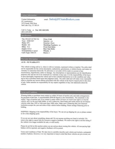 This is a no reserve auction. if you bid be ready to buy this once in a lifetime bike1947 Style Springer Softtail This is a custom built Springer Soft Tail. this bike was a full build from frame to fenders. Motor to dash. Clean title in hand as a 2008 build. This bike is designed as an old time garage build. This bike was built by Roland Classic Customs in Thibedaux. LA in 2008 it has a modified DNA Specialty 250 frame with a replica 1947 springer front end with a 1972 unrestored round rear swing arm. The frame is topped with a 1947 original police seat. This bike is powered with a 2007 Ultima 113 ci. nbsp; ‘el bruto’ motor with a HSR-45 carburetor with a dry clutch belt primary drive and a rear chain drive. The transmission is a 6-speed Mikuni. it has custom made gas tanks and a round oil tank. custom fenders a handmade dash. 12 v system. The bike was finished with a set of beach bars. and custom rear luggage rack and twin fenders and new old stock saddle bags. I have full receipts and the list of parts used in excess of $15. 00. in these parts alone to build. and it’s as blast to ride. Happy Bidding We will be glad to answer any questions or send out more pictures. The bike is located in Salt Lake City. UT. and is currently for sale locally. we reserve the right to end the auction early. We will consider trades for some select vintage cars Joe 801. 60. 496