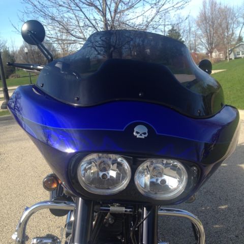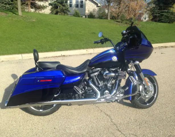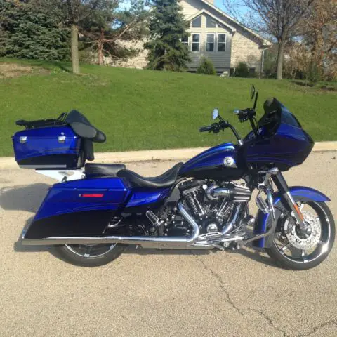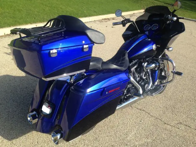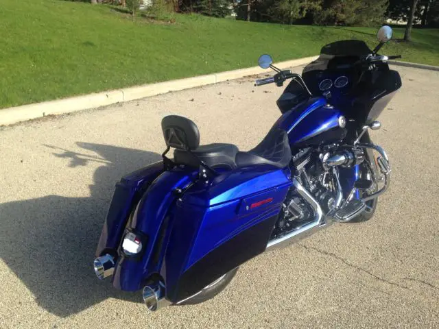 2012 Harley-Davidson Road Glide CVO- Custom Vehicle Operation FLTRXSE Motorcycle. Candy Cobalt/ Twillight BlueThis CVO comes loaded with numerous stock items to include: SE Twin Cam 110 engine. 1803cc. 6 speed cruise drive. Heavy Breather air cleaner. 6 Gallon gas tank. Anti-Lock Brembo brakes. Fat Ape-Hanger handlebars with internal wiring. Hydraulic Clutch. Electronic Cruise Control. Harmon Karmon audio system with 100 watt Amp per channel. IPod Nano. HD smart security system. Windsplitter smoked windshield. Stretched Saddlebags. Liners bags for saddlebags. Rear fender lights. Adjustable rear shocks. Black and Chrome Agitator wheels 19" front - 18" rear. two-piece seat. full bike cover and Gold CVO Key to name a few. Added items: CFR mufflers. Jackpot inner and outer ceramic coated headpipe. Screaming Eagle Tuner. curved license plate cover. Skull horn cover with eyes that light up. Rider footboard guard. four point docking kit for items that detach. detachable color matched HD King tour-pak with Airwing rack. passenger detachable backrest. Saddlebag Lid organizers. hidden antenna. HD Rumble matching footpegs on engine guard and WindVest smoked windshield. Maintenance records from HD dealership and HD 7 year unlimited miles service contract with tire and wheel coverage that expires in 2019. All original factory parts that were replaced are also included. The detail in the custom paint is difficult to see in the photos. This motorcycle is a one owner bike in excellent condition. Thank You for viewing.