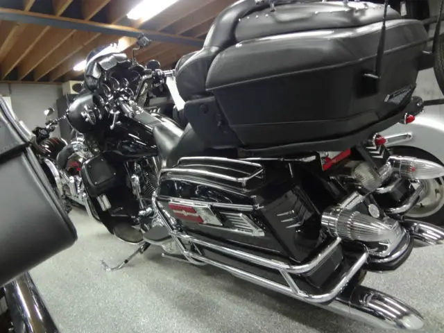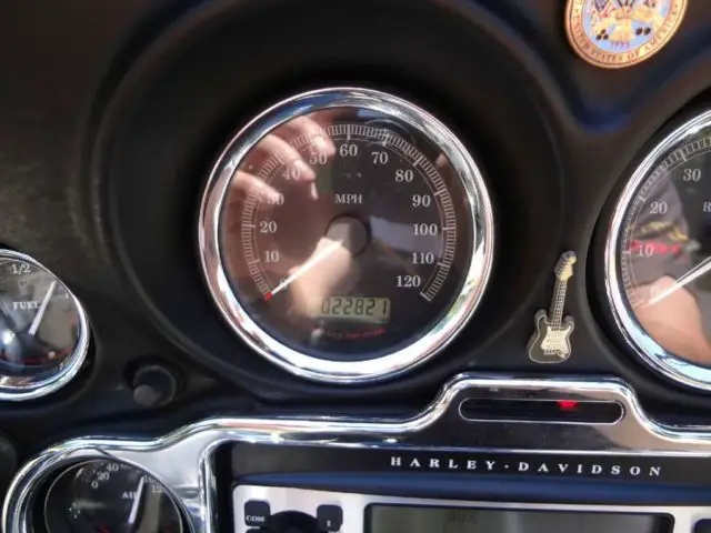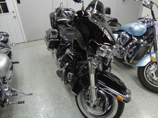 2007 Harley Davidson Electra Glide Classic*Financing/Monthly payments available for those who qualify*Rates as low as 2. 49% for 60 monthsBeautiful bike with LOADS of custom features. One of a Kind and sure to catch everyones attentionThe following is a list of all the great features that have been added to this classic - Upgraded fog lights - New style Windshield- Cargo bags ( touring bags)- Trunk and saddle bag inserts- Lites on touring bags- Chrome additions- Gauge and console trim- Tank neck- Cell phone and EZ Pass holder- Mirrors with Turn Signals- Lower Fairings- Driver backrest- Chrome passenger foot rest- Vance and Hines exhaust- Touring package with speakers and amp. - Passenger backrest- 59 Cadillac tail lights- Hitch with 3 flag posts- Underlighter-Center kick standEACH CUBIC INCH WILL GET YOU OUT THERE BREATHING IN THE GREAT WIDE OPEN. Life speeds up. Things get crazy. Suddenly. you don't have time. All it takes is a six-speed remedy called the Electra Glide® Classic. a new Twin Cam 96™ V-Twin engine. Each cubic inch will get you out there breathing in the great wide open. You ride with a style that transcends time. From the comfort-stitched seat and wraparound backrest to the redesigned and more passenger-friendly Tour-Pak®. A rockin' Harman/Kardon® Advanced Audio System and countless other luxurious passenger and rider accommodations. In short. it offers everything you need to spend some quality time rumbling past endless mile markers. SpecsManufacturer Harley-DavidsonModel Year 2007Model Electra Glide® ClassicPrice *$11. 00. 00Color Vivid BlackMiles 22841DimensionsLength 97. 5 in. (2. 76. 5 mm)Weight 784 lbs. (356 kg)Ground Clearance 5. 1 in. (129. 5 mm)Wheelbase 63. 5 in. (1. 12. 9 mm)Seat Height Laden: 27. 3 in. (693. 4 mm)Unladen: 30. 7 in. (779. 8 mm)EngineEngine Air-cooled. Twin Cam 96™Displacement 96 ciBore x Stroke 3. 75 x 4. 38 in. (95. 18 x 111. 13 mm)Torque 92. 6 ft. lbs. (125. 5 Nm) @ 3. 00 rpmCompression Ratio 9. 2:1 Fuel System Electronic Sequential Port Fuel Injection (ESPFI)Fuel Tank Capacity 5 gal. (18. 9 l)Clutch Multi-plate with diaphragm spring in oil bathExhaust Chrome. touring cross-over duals with taper end capsDrivetrainTransmission 6-speedFinal Drive Carbon-fiber beltBrakes/Wheels/TiresBrakes Front & Rear: 4-pistonTires Front: MT90B16 72HRear: MU85B16 77HOperationalRake 26°Trail 6. 2 in. (157. 5 mm)Standard FeaturesUNIQUE FEATURES: 40-watt Advanced Audio System by Harman/Kardon® Batwing. fork-mounted fairing with full instrumentation Black powder-coated engine with chrome covers Hard saddlebags and King Tour-Pak® with chrome accents and 2-position adjustability ADDITIONAL SPECIFICATIONS:Dimensions Oil Capacity: 4 qt. (3. 8 l) Running Order: 820 lbs. (372 kg) Powertrain Miles per Gallon:Hwy: 45 mpgCity: 32. 5 mpg Primary Drive: Chain Gear Ratio (overall):1st - 9. 3122nd - 6. 4213rd - 4. 7744th - 3. 9265th - 3. 2796th - 2. 790 Wheels Front & Rear: Black 9-spoke cast aluminum Electrical Instruments:Electronic speedometer with odometer Dual resettable tripmeter Tachometer Fuel gauge Voltmeter Low oil pressure gauge Diagnostics readout Ambient air temperature gauge 6-speed indicator light Wired to accept electronic cruise control Indicator Lamps:High beam Running lights Front fender running lights Directional light bar Neutral Low oil pressure Engine diagnostics Cruise control Accessory speakers Turn signals 6-speed Low fuel warning Chassis Lean Angle (per SAEJ1168): 30° / 32° *Seller is NOT responsible for arranging shipping. ALL transportation must be arranged by the buyer*