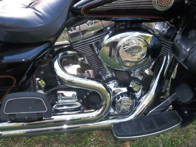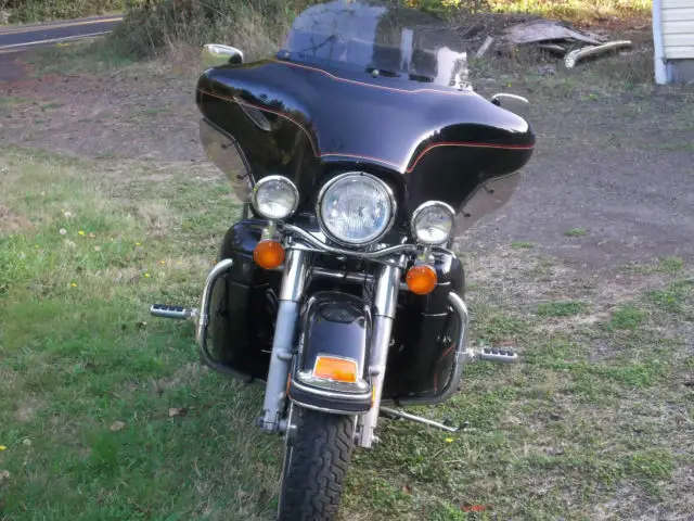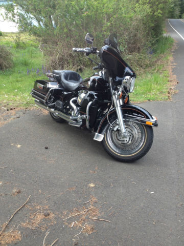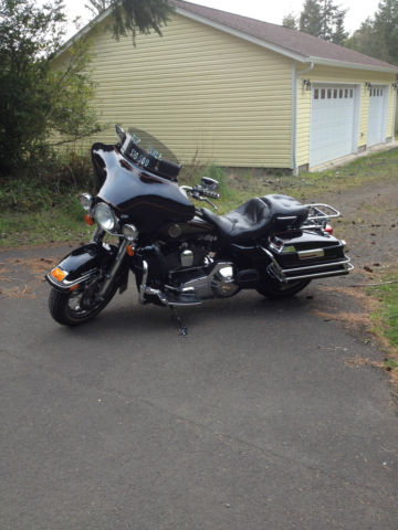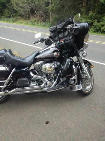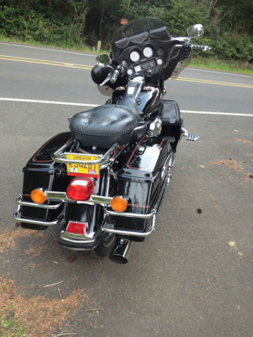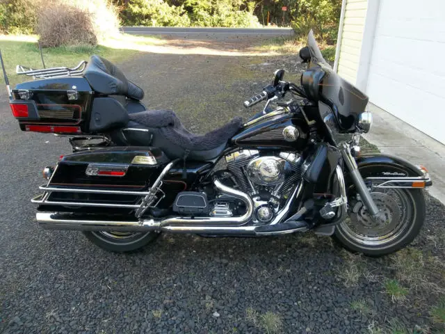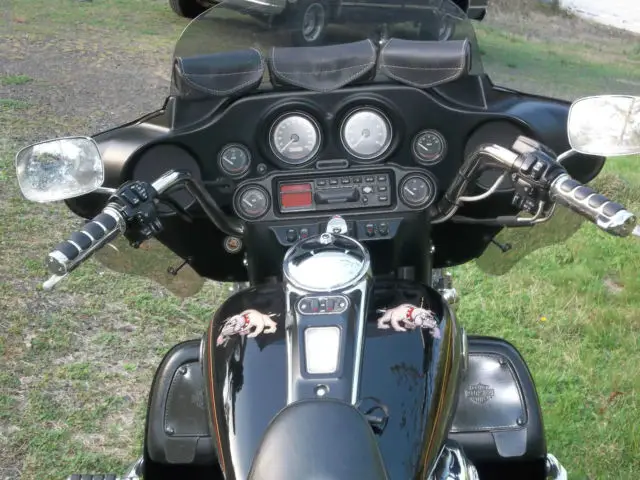 UP FOR AUCTION MY 2002 HARLEY ELECTRA GLIDE ULTRA CLASSIC I'M THE 2ND OWNER OF THIS WELL MAINTAINED AND CARED FOR MACHINE. ONLY A COUPLE SMALL FLAWS A CIGARETTE BURN ON SEAT FROM FIRST OWNER. CYL. HEAD TEMP GAUGE LENS IS HEAT CHECKED. AN AWESOME RIDING AND HANDLING BIKE. EQUIPPED WITH. AM/FM CASSETTE. CB RADIO. CRUISE CONTROL. AIR SHOCKS W/SPECIAL MANUAL PUMP. STAGE ONE SCREAMING EAGLE COMPUTER UPGRADE. 2 INTO 1 EXHAUST. FACTORY OWNERS MANUAL. TOOL KIT. nbsp;ALSO HAS TWO HAND PAINTED BULLDOGS ON TANK (SEE PICS). OMES WITH MANY EXTRAS I. E. REMOVEABLE DRIVERS BACKREST (NOT SHOWN) SHEEP SKIN SEAT COVER IN DARK GRAY. HARLEY LEATHER HEATED GLOVES. HEATED JACKET LINER. GAUNLET COVERS. HELMET WITH MIC AND EAR PIECE 3/4 STYLE. BATTERY TENDER. REMOVED TOURING TRUNK AND HEAL SHIFTER. HAVE THEM AND CAN INSTALL THEM BEFORE SHIPPING ALSO CD ROM FOR UPGRADE INCLUDED. PLEASE ASK ALL QUESTIONS BEFORE YOU BID GOOD LUCK AND THANKS FOR LOOKING. MORE PICTURES UPON REQUEST. ADDED LAST 6 PICTURES TODAY 5/7/2015 THIS IS THE BIKE AS OF PRESENT TIME AND CLEAN NOT DUSTY. THANKS