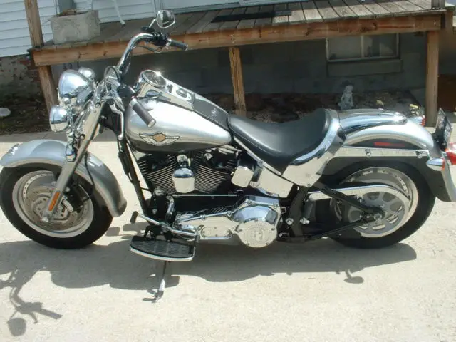 Here is a great opportunity for someone. I'm selling my '03 Fatboy. Not because I don't enjoy riding, but because I just don't have the time to enjoy it like I should. This is the Black and Silver Collector's Edition that is highly sought after. It is a beautiful bike. It has Screaming Eagle pipes, lots of chrome, and a Screaming Eagle seat. This is a single saddle with the long chrome tail on it that really sets this bike apart. It makes the bike set down low. The seat alone is over a thousand dollars. This is practically a new bike. It has less than 4400 miles on it, see odometer in pictures. Included are the original 100th anniversary seat, 100th ann. back rest, and 100th ann. hard locking saddlebags. All with anniversary badges. Also included is a windshield, cover, and a trickle charger. It's a great ride. I've decided to give up riding so, my loss is a great deal for someone. Might as well be you!!!