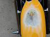 THE ARTWORK IS REALLY DONE WELL. EAGLE ON THE FRONT FENDER . HD LOGO ON THE TRUNK LID. THE MURAL ON THE BACK IS "ALL AMERICAN" WITH THE SNOW COVERED MOUNTAINS, THE DESERT WITH THE INDIAN TP'S AND THE LIGHTHOUSE. THERE IS A SKELATON HIDING IN THE WATER PLAYING A FIDDLE.