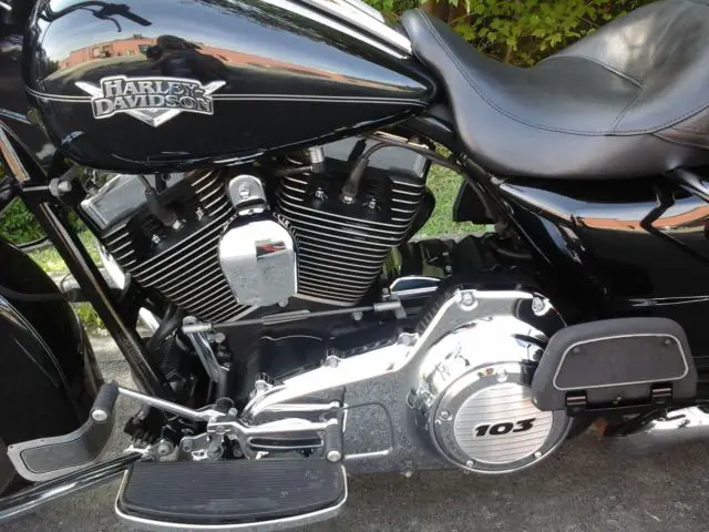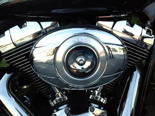 Engine and transmissionDisplacement:1690 (103 cubic inches)Engine type:V2 four-strokeEngine details:Twin Cam 103Torque:138.00 Nm (14.1 kgf-m or 101.8 ft.lbs) @ 3500RPMCompression:9.2:1Borexstroke:95.3 x 111.1 mm (3.8 x 4.4 inches)Valvesper cylinder:2Fuel system:Injection. Electronic Sequential Port Fuel InjectionFuel control:DOHCCooling system:AirGearbox:6-speedTransmission typefinal drive:BeltClutch:Multi-plate wetDrive line:Primary Drive: Chain 34/46 ratio. Final Drive: 32/68 ratioExhaust system:2-1-2 chrome exhaust with dual mufflersChassis suspension brakes and wheelsFrame type:Mild steel; tubular frame; two-piece stamped and welded backbone; cast and forged junctions; twin downtubes; bolt-on rear frame.Rake (fork angle):26.0°Trail:170 mm (6.7 inches)Frontsuspension:41.3mm telescopicFrontsuspensiontravel:117 mm (4.6 inches)Rearsuspension:Air-adjustableRearsuspensiontravel:76 mm (3.0 inches)Fronttire:130/90-B16Reartire:180/65-B16Front brakes:Double disc. 4-piston fixed caliper. Optional ABS.Front brakes diameter:300 mm (11.8 inches)Rear brakes:Single disc. 4-piston fixed caliper. Optional ABS.Rear brakes diameter:300 mm (11.8 inches)Wheels:Chrome Laced SteelPhysical measures and capacitiesDry weight:355.0 kg (782.6 pounds)Seat height:714 mm (28.1 inches) If adjustable lowest setting.Overall length:2393 mm (94.2 inches)Ground clearance:130 mm (5.1 inches)Wheelbase:1630 mm (64.2 inches)Fuel capacity:22.70 liters (6.00 gallons)Oil capacity:3.50 liters (0.23 quarts)MCH-D will ship anywhere in the U.S. Financing available (WAC) up to 84 months with zero down and payments as low as $220.63 (before taxes). We accept almost all trade-in’s and will gladly appraise your trade. All sales will include a $320.00 Doc Fee. MCH-D reserves the right to end this auction at any time. Please contact Heidi @ 706-996-7881 or email directly @ HVALIQUETTE@THECREEKHD.COM for further information and/or questions. You can view more of our pre-owned inventory @ www.mountaincreekharley.comAlso published at eBay.com