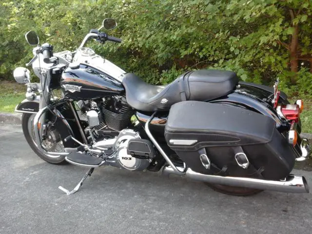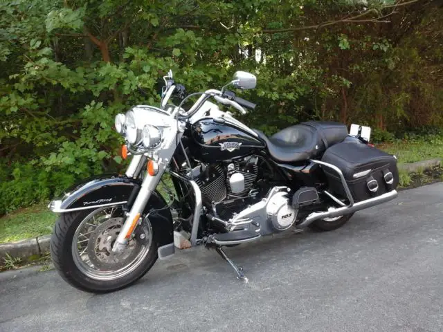 The Harley-Davidson Road King Classic model takes the nostalgic look and feel of the Road King a little further with extra details for this road-worthy touring bike like leather-wrapped saddlebags nostalgic chrome fuel tank console tooled metal detailing on the fender tank seat and bags and chrome laced wheels with wide whitewall tires. The innovative Harley-Davidson Touring chassis is based on a single-spar rigid backbone frame and a stout swing arm developed to withstand the demands of long-haul touring riders and today's powerful engines.SPECIFICATIONS: