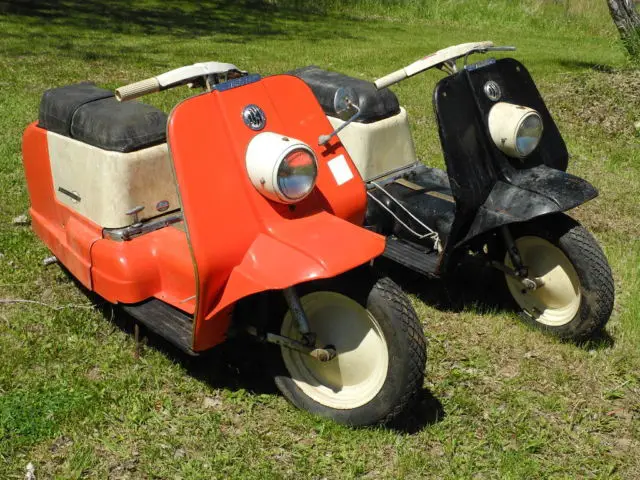 These are barn find scooters and they have been in storage for many years. They look like they were not ridden very much before they were put away.