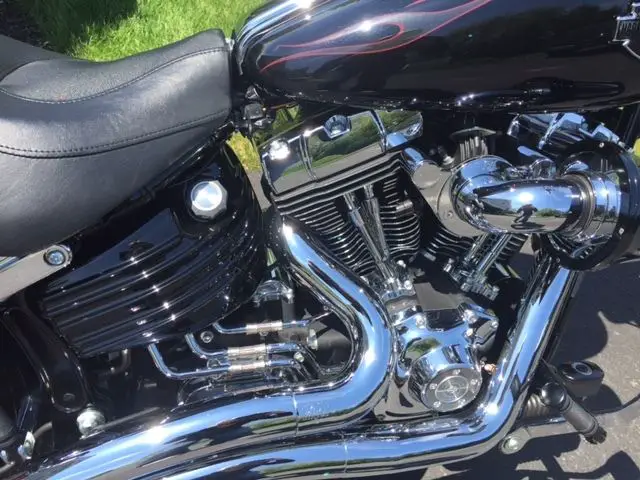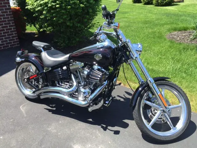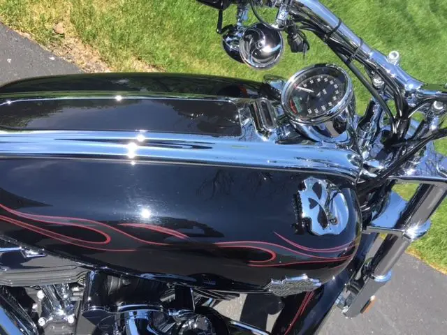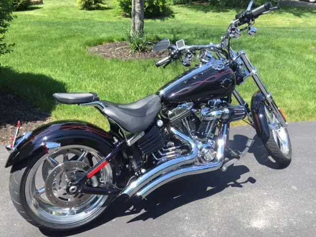 You are bidding on a like new showroom condition flawless Harley Davidson Rocker C. Besides all the added chrome many performance items were added.. The Harley race tuner Vance Hines exhaust system and Screaming Eagle Air Intake. Also Harley LED lighting for that cool night time effect and some Hog tunes to set the mood. New rear tire alone was $800. Also skulls on the tank and custom skull mirrors. Just to many options to list. Paint is flawless. You would spend $27000 for this bike new. Here is your chance to own a custom perfect bike with performance and looks for much less.