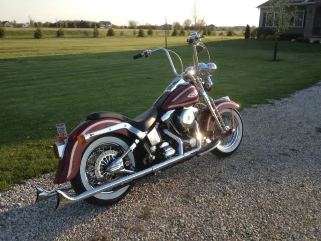 Hi. This is my 1999 Heritage Springer FLSTS. It is a 2 owner bike and has extensively been redone by myself a certified Harley mechanic and a professional painter who works for Harley here locally. This bike has the original 6200 miles on it and has a clear title. There is only 2790 models of the 1999 Harley Springer's made and this red in my opinion was a very hard color to find. Plus this is the last year for the EVO motor! I love these Springer's because they hold there value better than any other softail out there. I do have the original bags (all black) and the original driver seat with passenger seat as well and also the sissy bar and front crash is included too. It does NOT come with a windshield. All the fluids(oilbrake) have been changed in it and it is ready to roll.
