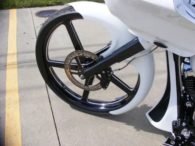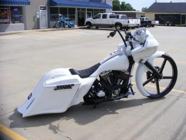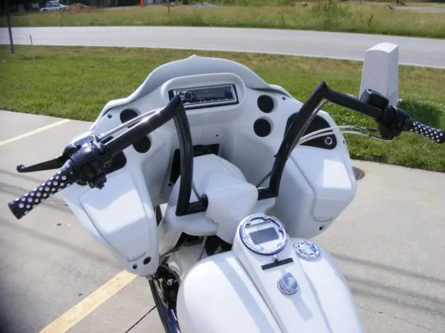 your currently viewing A 2007 CUSTOM ROAD KING with road glide conversion. bike has a salvaged title 8800 approximate miles win superb condition without any damage. bike has 30" razor wheel by customcyclesltd tow compressors and tanks for easy up front and rear airide. Extended TOL bags and fender and TOL tag bracket. Extended tank and side flres road glide inner/outer fairing with kenwood marine radio also hosuing 4 tweeters/5.25 in dash speakers along with cerwin vega bomber series 4channel amp pushing 2 6x8 and 2 6x9 speakers. matching smt floor boards grips bag latches and more. Powder coated forks rear stock wheel horn cover levers floorboard brackets and more. Aftermarket digital speedometer. Custom seat with matching detachable passenger seat. any questions feel free to call or text at a decent hr. (easterntime) 3364567894
