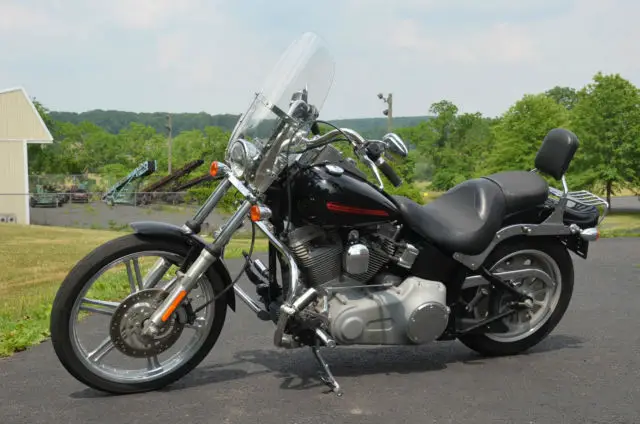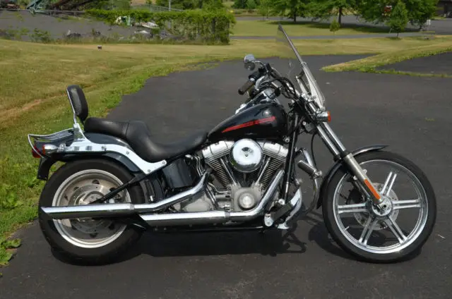 Low miles. Factory 200 Rear tire. 96" motor and 6-speed transmission. Extras include: Screamin' Eagle stage 1 high flow air cleaner kit tune Rush mufflers 21" chrome Thunderstar front wheel quick detachable windshield quick detachable sissy bar touring seat chrome engine guard highway pegs chrome rider pegs chrome shift peg turn signal relocation chrome luggage rack round air cleaner cover & chrome derby cover.We are a licensed and bonded dealer that has a retail store. I would be more than happy to talk to you and fax any verification you may need. References available upon request. Check out our Motorcycle related feedback and bid with confidence 10% DEPOSIT DUE WITHIN 24 HOURS. Payment in full Via bank to Bank Wire Transfer Cashiers Check Bank Check Cash in Person or Loan Check (must clear prior to pick up) WITHIN 7 DAYS. We charge a $99 Documentary fee which covers all your paperwork & any paperwork shipping costs. We also have an OPTIONAL $199 Dealer prep which covers this bike being serviced fresh fluids& detailing. If you require a loan or do not have funds in hand please make arrangements or contact us prior to bidding.Also published at eBay.com