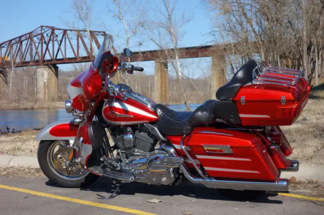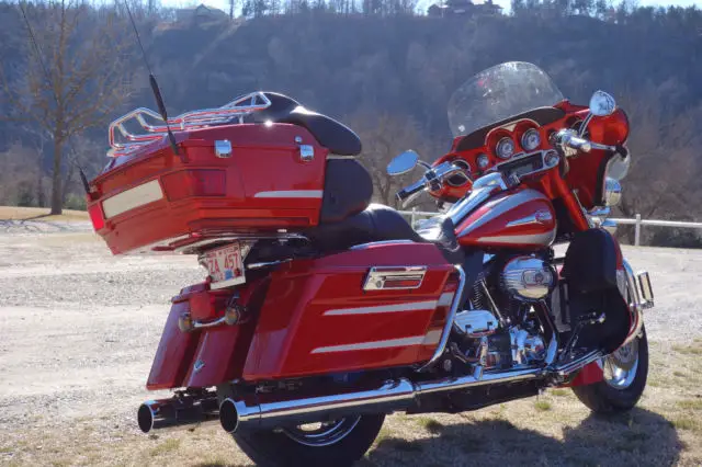 2008 Harley Davidson FLHTCUSE3 Ultra Classic CVO. Copper Canyon Orange and Silver Accents. Beautiful bike with 33000 miles I took the bike in for a complete end-to-end checkup at "Southern Thunder" HD in Southaven Ms. less than 200 miles ago. Service and tune up performed at that time everything is Harley OEM stock with the exception of the led lighted mirrors.110 C.I. --- 1803 CC engine 6 speed transmission. Please check Harley site for equipment that came standard on the FLHTCUSE3 (way to much stuff to list).The bike is for sale locally and currently at RPM Performance in Gassville Ar. If requested I can send additional photos or answer any questions. The owner of RPM is a Harley Davidson Master Technician and can answer any mechanical or technical questions you may have.SALES LIMITED TO THE U.S. (LOWER 48) AND CANADA. BIKE MUST BE LOCALLY PICKED UP AFTER COMPLETION OF TRANSACTION WHICH WILL ONLY BE MADE AT A LOCAL FEDERAL BANKING INSTITUTION TO VERIFY FUNDS. THESE ARRANGEMENTS ARE MADE FOR BUYER/SELLER SECURITY AND PROTECTION.