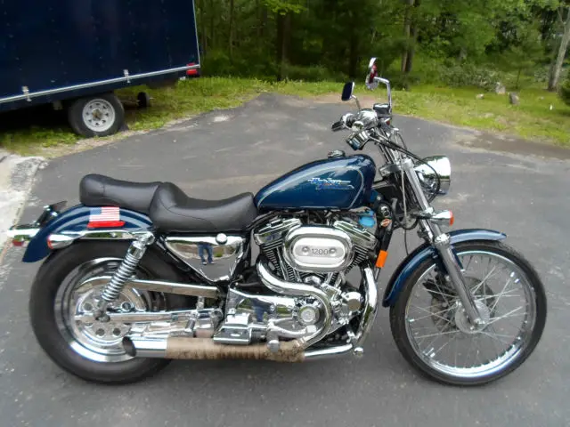 Up for auction is a nice 1200 Sportster. It has always been garage kept always ranpremium fuel and mobil1 syntheticoils. It starts easy and runs strong I just have no time to ride anymore. It does have some minor stone chips and a couple of scratches which I tried my best to show in the pictures. The chrome plating on the rear aluminum wheel is starting to bubble but for a 17 year old bike it is in very good original condition. Feel free to ask any questions If you are local (Western Massachusetts) and would like to see it in person that can bearranged.