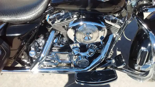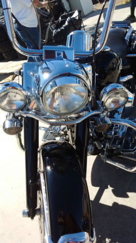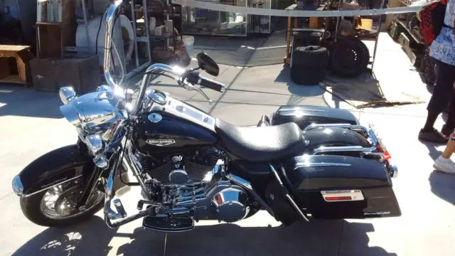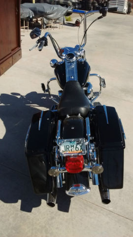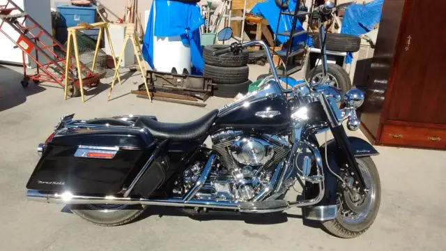 THIS HARLEY ROAD KING IS NOTHING SHORT OF BEAUTIFUL Black pearl with magnificent shiny chrome. This Bike is what you might call a dream machine of motorcycles 1450cc One Owner 6668 miles New Tires Stage One Screaming Eagle Kit Dual Thunder Header Exhaust Comes With Two Seats Double Seat Ostrich Hard Bags that spell out RoadKill on the bag New Front Fork Powdered Coated Black Ape Hangers 18" chubbies you really need to sit on this Bike to appreciate it. There are a few extra accessories the extra seat and a backrest there are a couple more you can see in the pics