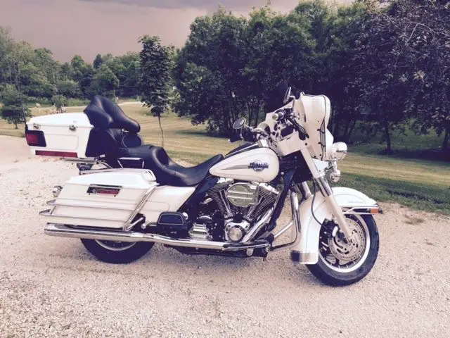 2005 HarleyUltraClassic. Glacier white with matching inside fairing color. Kuryakyn Hyper Charger and new Rhinehart true dueexhaust.New tires last year with about 1500 miles on them. Thisbike is in great condition and runs great also. Comes withdetachableback rest anddetachabletour pack which are not currently on the bike. Wouldn't sell it if I didn't need the cash. If you have any other questions please email me.