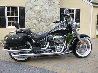 All I can say is WOW! I'm always pleased with the quality of the bikes I am blessed to find but this is another one that is over the top and is in pristine condition! Avery comfortable ride for both rider and passenger on longer trips yet the FLSTN Deluxeprovides a stylishly cleanlook if that is what you desire. This eye catching One-Owner 2009FLSTN Softail Deluxe in the super rare and always classic Vivid Blackwith only 18303milesis one breathtakingmachine. There is no doubt that this one will simply have them stopping drooling wishing and imagining throwing their leg over her and... You get my drift.Withonly 18303miles the bike is simply devine. I purchased the bike a few weeks agofrom the original owner just outside Bordentown NJroughly 150miles from me when the owner decided to move to a four wheeled Hot Rod for his hobby. It was sold new at Mike's FamousHarley Davidson in New Castle DE.It has had immaculatecare and is in "like new"condition.All things considered this bike is well worth the coin. You will not replace this one with mileage this low for my asking price.The bike is simply impressive. I personally inspected and detailed the bike and saw nothing to even mention. There is not a ding scratch dent or anything that I detected. Every item on the bike works just as it should. The tires are 80% on the front and 90% in the rear. The leather seat is like new with no wear or damage. The chrome is beautiful and what you would expect on a low mileage One-Owner machine. In addition to all the standard equipment this one comes with a detachable passenger backrest genuine Harley Davidson Saddlebagspassenger foot boards genuine harley Davidson windshield Willie G skull derby cover and a battery tender lead.One of the most confidence-inspiring Big Twins the Softail® Deluxe features an extremely low seat with "collapsing sides" pull back handlebar and riser and easy-reach extended kickstand. The powerful counter-balanced Twin Cam 96B™ and 6-Speed Cruise Drive® transmission are appreciated by many riders. Exquisite style details round out every other corner of this bike from the clean front light bar to the tombstone taillight to the chrome grab rail and luggage rack to the laced wheels and wide whitewall tires. The addition of the new Security Package andanti-lock brakes giveeven more functionality to all this form.
