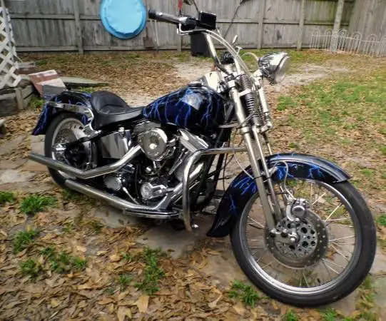 Super awesome HD Softail 1989 FXSTS with springer front endcustom fendersonly 6014.2 miles since engine rebuild.Way too many extras to try and list.Custom Black with white/lt blue lightening bolts paint jobAll the chrome that can be added has been added. Looks - amazing; Sounds - awesome Rides like a dream. Must see this one to appreciate.NEVER DROPPED OR LAID OVERCall it a "head turner" or a "bar hopper" it attracts attention everywhere it goes.21" FRONT TIRE REAR MAG WHEELCustom everything all the chrome additions that can be bought were bought and installed..Lots of internal S&S parts.Top end is S&S custombottom end is solid HD EVO.Good tirescustom headlightsoriginal leather saddlebags.Custom seat.Amazing bike services done by professionals no shade tree work has ever been done.NOTHING LEFT TO DO TO IT - JUST RIDE.Must pick up cash sales Title in hand.
