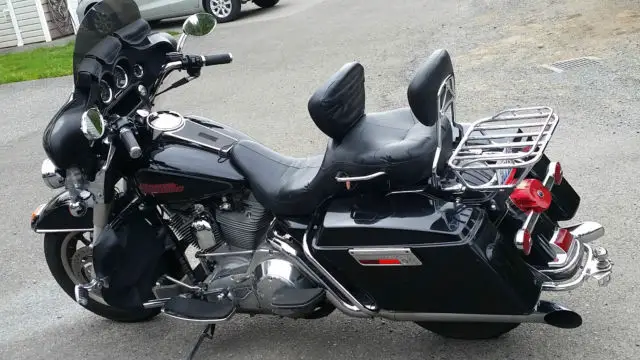 One Owner .. Oversize padded Hand Grips Arlen Ness mirrors Custom Chrome Side Turnout Pipes Harley Backrest Tall Backrest for passenger Harley Chrome Luggage Rack..