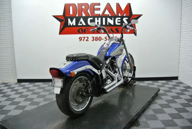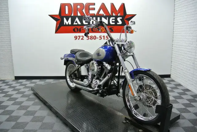 YOU ARE LOOKING AT A 2009 HARLEY DAVIDSON SOFTAIL CUSTOM (FXSTC) WITH 31048 MILES ON IT. IT IS FLAME BLUE PEARL AND PEWTER PEARL IN COLOR AND POWERED BY A 1584CC (96") FUEL INJECTED ENGINE AND 6 SPEED TRANSMISSION. THE BIKE COMES WITH 1 KEY 1 REMOTE AND FACTORY SECURITY SYSTEM. THERE ARE SOME EXTRAS ON THE BIKE WHICH INCLUDE VANCE & HINES EXHAUST STAGE 1 AIR INTAKE CHROME AIR CLEANER COVER HORN COVER GAS CAP GRIPS BRAKE/CLUTCH LEVERS AND GRIPS. THERE ARE NO DENTS OR DINGS THAT I CAN FIND. THERE ARE SOME MINOR TOUCHUPS ON THE REAR FENDER AND TANK DECAL IS PEELING/SCRATCHED ON ONE SIDE. THE CHROME AND ALUMINUM ARE IN GOOD CONDITION WITH THE EXCEPTION OF TOUCHUPS ON THE MASTER CYLINDER COVERS AND SOME SPOTS ON THE FORK LOWERS AND THE REAR WHEEL HAS SOME SLIGHT HAZINESS. THE TIRES HAVE GOOD TREAD LEFT ON THEM. WE ARE SELLING THE BIKE WELL UNDER BOOK VALUE SO IF YOU ARE LOOKING FOR A REALLY GOOD DEAL ON A SOFTAIL CUSTOM PLEASE CONSIDER THIS ONE.