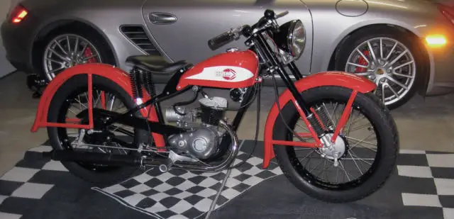 Beautiful 1959 125cc Harley Hummer show bike. I purchased this bike from a collector to use as a show bike. I have never started it however I was told that after the complete restoration it was started and driven to make sure it was in good working order. The interior of the gas tank is powder coated. I have clear title. There are only two areas with small chips in the paint (see pictures)