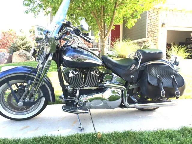 100 year anniversary collectible that rides like a dream. 13000 original miles! Fuel injected! 1 of 400 in this paint and year (1 is in the Harley Museum). Pinstripe has anniversary water marks and special wings badge on gas cap engine block and intake cover. Without hesitation I would take on a cross country trip today (new tires just put on last fall). Garage kept adult owned and maintained battery tender attached. It looks good in town and carries everything for a 2 person trip to Sturgis in the huge saddlebags. Comes with harder-sided bags that keep shape passenger seat pillion Anniversary back rest and quick detach windscreen. Nice deep rumble. LOWER RESERVE than similar "sold" gunmetal blue anniversaries (check the completed listings on eBay to get an idea). Here is why: almost unnoticeable blems from road trips (all pictured but hardly noticeable even in pictures). 1 dime size chip (pictured) I just picked up that to me brings the value down from "mint condition" to excellent. PRICED TO SELL! Buyer rides it home or handles the shipping arrangements. Ask any questions you wish-sales final- but you won't be disappointed.Selling it out of financial desperation so take it off my hands before Sturgis gets any closer and I want to ride it out! Definite head turner and best looking most original springer in my local springer club.
