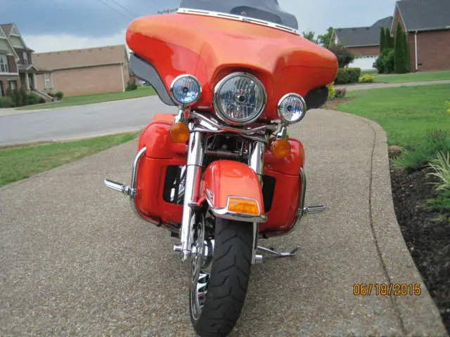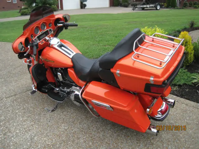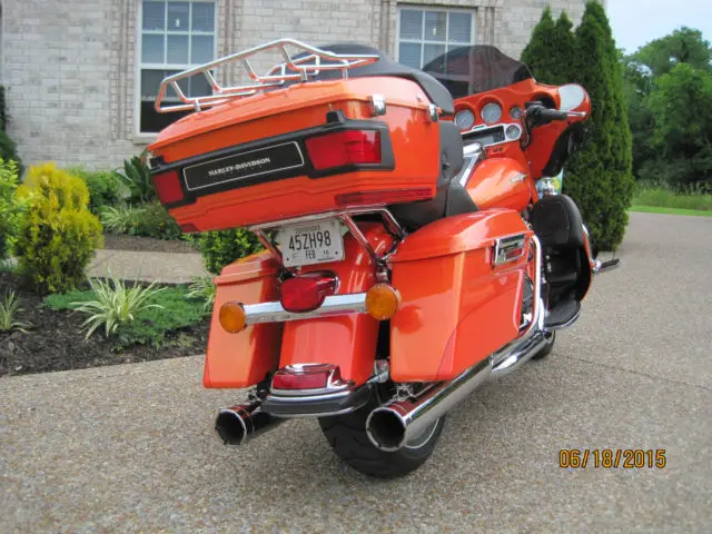 KEPT IN SHOWROOM CONDITIONTEQUILA SUNRISE ULTRA CLASSIC LIMITED! EQUIPPED WITH ABS HEATED GRIPS I PURCHASED THIS BIKE MARCH 2014 WITH ONLY 1100 MILES FOR $24500 INSTOCK CONDITIONFROM A LICENCED HARLEY DAVIDSON DEALERSHIP OF THEIR SHOW ROOM FLOOR!THEN IPAID ANOTHER $3K IN OPTIONS TO HAVE THE INNER FAIRINGSENT AWAY TO HAVETHE PAINTMATCHED TO THE BIKE PLUS INSTALLAFULL TRUEDUAL VANCE AND HINES FOUR INCH EXHAUST AS WELL AS A STAGE 2 TUNE. NO TIME TO RIDE SO RELUCTANTLY I AM SELLING IT. YOU WONT FIND ANOTHER ONE THIS NICE SO DONT MISS IT. I HAVE $27500 IN THIS ULTRA SO UNDERSTAND I WILL NOT LOSE SEVEN OR EIGHT GRAND IN 15 MONTHS. SO USE LOGIC WHEN BIDDING? AN OPENING BID IS NOT THE SELLING PRICE IT IS AS IT SAYS AN OPENING BID! I DO NOT NEED TO SELL THIS BIKE I JUST DONTRIDE IT THAT OFTEN AS YOU CAN SEE BY THE EXTREMELY LOW MILEAGE.IF YOU HAVEANY QUESTIONS E MAIL WITH YOUR PHONE NUMBER AND I WILL CALL YOU BACK. MY PHONE NUMBER IS 615-775-7958 IN NASHVILLE TENNESSEE. I WILL NOT TELL YOU MY RESERVE IT ISHOWEVER MUCH HIGHER THANTHE OPENING BID. THANKYOU FOR LOOKING