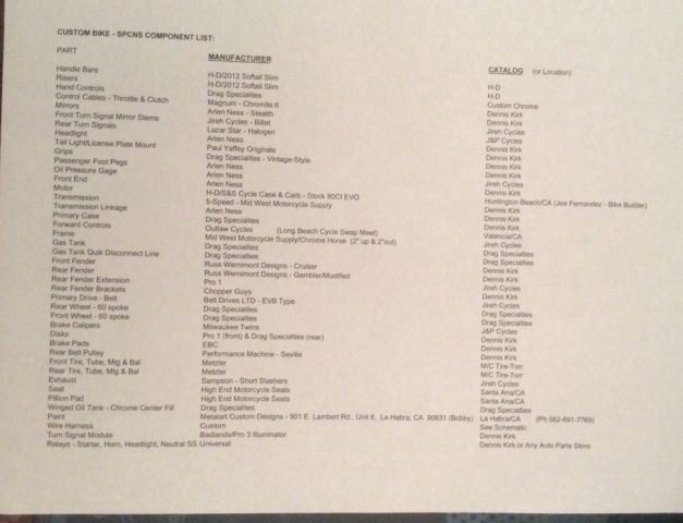 Arlen Ness front end.S&S Cycle Case & Carb - Stock 80CI EVO5 speed transmissionStretched tankCustom fenders200mm rear tireCustom Metal Art paintLess than 10000 original miles.Too many extras to list.Over $1000 in spare parts included.Complete built sheet.I have more pictures and videos I can send you.