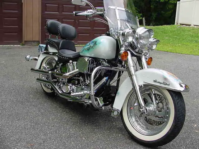 MAGNIFICENT ONE OF A KIND CUSTOM HARLEY DAVIDSON HERITAGE SOFTAIL. EXCEPTIONAL ARTWORK WITH DETAILED NAUTICAL THEME FEATURING THE FEMALE ANATOMY IN A PLAYFUL MOTIF COVERING VARIOUS SECTIONS SUCH AS TANK/FRONT AND REAR FENDERS. TO ADD TO THIS MASTER PIECE THE BIKE ALSO FEATURES AN ARRAY OF CUSTOM CHROME WORK SUCH AS CONTROLS GRIPS FRONT END EXHAUST AND ENGINE MECHANISMS. TO ADD TO IT'S APPEARANCE THE BIKE ALSO HAS BEEN UPGRADED WITH CUSTOM WHEELS WIDE WHITE WALL TIRES CUSTOM SEAT WITH BACKREST AND QUICK DETACH WINDSHIELD. THIS BIKE IS MECHANICALLY SOUND AND SURE TO TURN HEADS WHILE A PLEASURE TO DRIVE AND SHOW. ANY QUESTIONS OR TO MAKE AN APPOINTMENT PLEASE CONTACT LANCE @ (732) 672-5414.TERMS & CONDITIONS: ALL NEW JERSEY RESIDENTS MUST PAY 7% SALES TAX. 20% DEPOSIT (CASH/BANK CHECK/WIRE TRANSFER) DUE @ AUCTION CLOSING. BALANCE (CASH/BANK CHECK/WIRE TRANSFER) DUE WITHIN SEVEN (7) DAYS AFTER AUCTION CLOSING. DELIVERY ARRANGEMENTS IN UNITED STATES ONLY AVAILABLE @ BUYER'S EXPENSE.