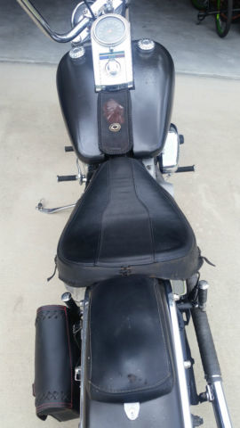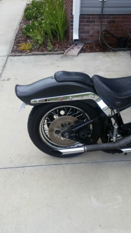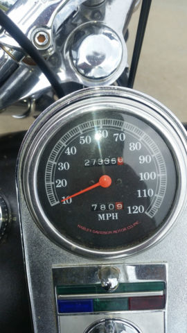 I have had this Softtail for several years. I initially traded it for an older car, itle for title, nd immediately gave it to a mechanic to start a complete rebuild. The Bike had been sitting for a while and showed 26,769 miles on the odometer when I purchased it, urrently still has super low mileage at 27,335 after rebuild. I keep it in the garage and only break it out once in a blue moon. I had the mechanic completely tear it apart and rebuild engine and replace so many more parts. The only thing I didn't have him do was replace the wiring harness. The bike stays on a trickle charger and starts right away. The previous owner installed an extra oil filter on it (last Pic), nd when it sits for a while, il seeps out of it on the initial start, his is the only thing I have not liked about it and this has only happened when I have been gone for a while and haven't had time to start it. This bike rides awesome and is nice and loud with the old school pipes. It wasn't meant to be anything fancy, ust a good riding bike. I will also throw in a motorcycle jack-stand with the bike.