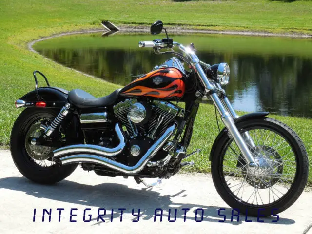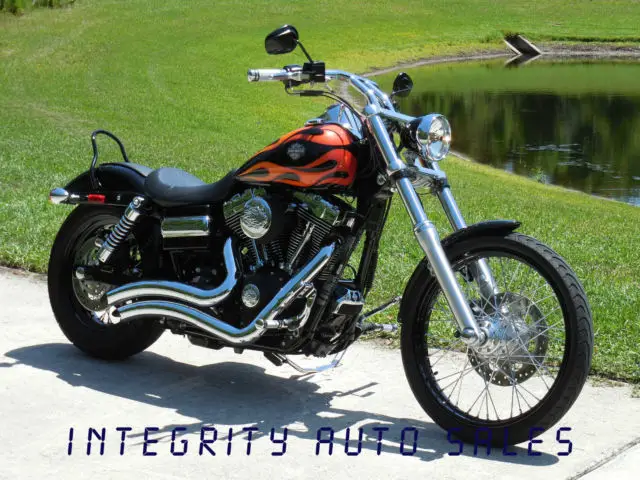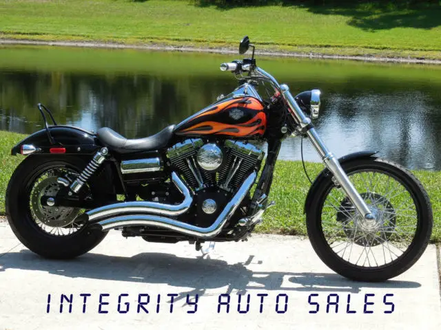Thanks for checking out this 2011 Harley Davidson FXDWG Dyna Wide Glide with 7300 actual miles. We just did a full service to this bike and changed all fluids and did a full safety inspection so it's ready to ride where ever you want to take it. It has the Flame paint from HD and some Custom bars as well. It has street sweeper exhaust and a flame derby cover and custom grips. It has a high flow air cleaner and a 96ci Vtwin and 6 speed transmission. It is a 1 owner bike and it was well cared for. These new Wide Glides are fun to ride and I like the way they sit. I have taken many photo's and a short video for you to see so have a good look. Bikes this nice never last long so stop in or call today before it's gone. Click here to see the video!!!https://youtu.be/G40C0mGDvYo I am offering a 100% satisfaction guarantee or your money back no problem. We are a 100% positive feedback dealer on ebay.We do not charge any extra dealer fees so just add your tax and tag and your riding! We don't always have all owners manuals and extra keys, f we say if we have them it will be in our description. Please don't assume we have them. We guarantee clean,free and clear title to all vehicles we sell,occasionally there is a small delayfor title and we can provide temp tag until you receive it. I do not hold bikes sold on ebay without a deposit unless there is quick communication for payment instuctions. So it is basically for sale until I receive deposit.Ebay buyers we only accept deposits through paypal.There is a 3% surcharge on all credit card transactions over $1000, therwise checks, ash, r wire transfersare fine.We do ship to many places in the USA at great ratesWe doalways consider yourtrade-ins as well. We havefinancingavailable for qualified Florida residents ONLY at great rates. We have an 18 month unlimited mile $0 deductible warranty on 06 and newerbikesthat covers pretty much the whole bike for as little as $425 I can email you the terms. We reserve the right toend any listing early since we sell many bikes in our own local market as well.We are Integrity Auto Sales offering quality pre-owned for 25 years at our same great location in the Daytona Beach Area. My name is Jim Coury feel free to contact me at 386 547 9369with any questions. Thanks and ride safe!!!