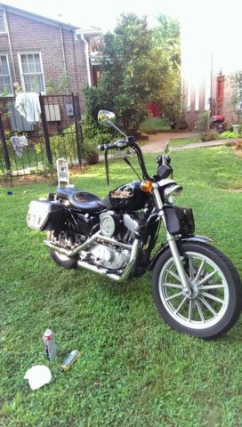 1997 Harley Davidson 883 Sportster. She has 10" mini apes, omfort grips, tage 1 intake, creaming Eagle exhaust, ew front and rear tires (Harley Davidson Dunlop) Road King rear shocks recent brake job, ecent tune up, oil change using amsoil and K&N oil filter, 3 spark plugs, &N air filter, you'll need to get a new air cleaner cover) she will need a new seat, he mustang seat getting a little long in the tooth. I have new stock rear shocks, nd some other stuff that will go with her. I have taken very good care of Betty and she has taken very good care of me. It has never been laid down. She is a very good entry level Harley Davidson, xcellent city bike, nd a great base for customizing.