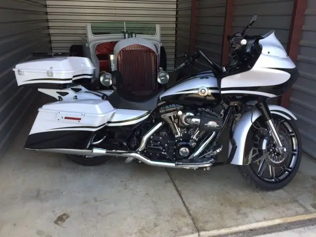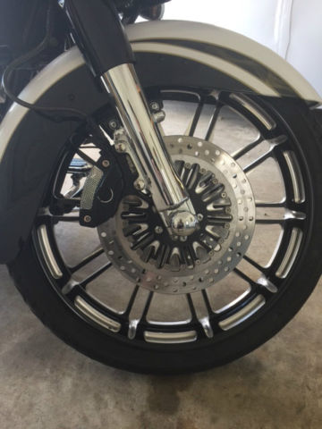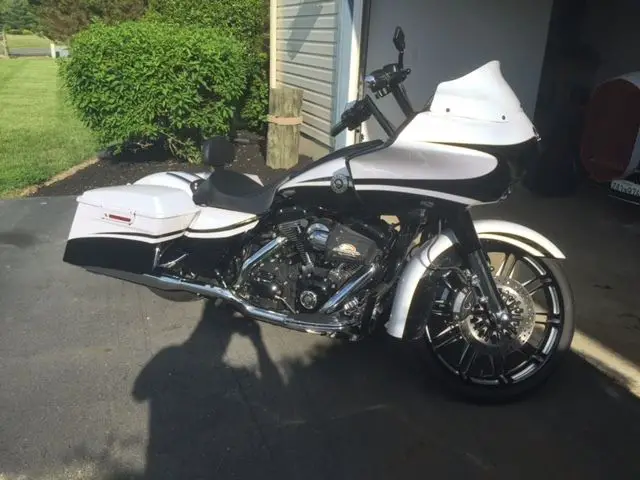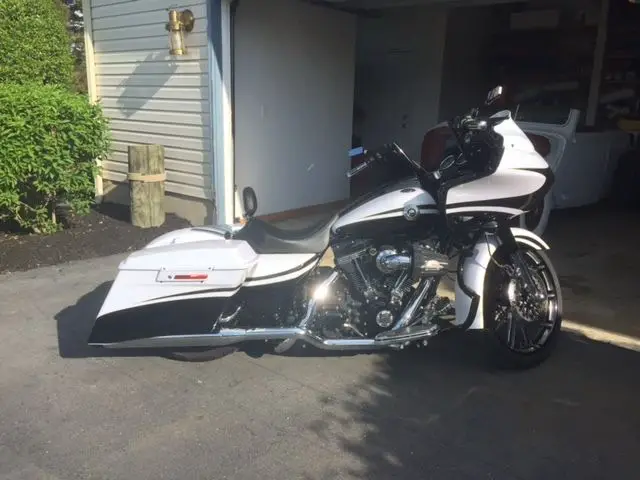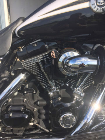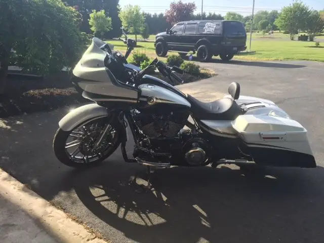 2012 ROAD GLIDE110 Screaming Eagle motor (119hp, 14 torque)CamHigh flow injectorsPerformance clutch plates58 mm throttle bodyADJ pushrods 99-11 tcHand Port heads by Steve ScieszkaRoland Sands wheelsF Boss 21x3.5RBoss 18x5.511.8 rotorChrome brake rotor hardwareFlare windshieldDetached tour pack (chopped)Boom! audio hidden antennaDyno tuneFull Rinehart Racing exhaustBaggedAlarmUpgraded mirrorsNavigationRadio (am, m, ux, pod)New tiresHarley HID headlightsiPodconnectionFast and LoudEverything done by Harley Davidson in Baltimore