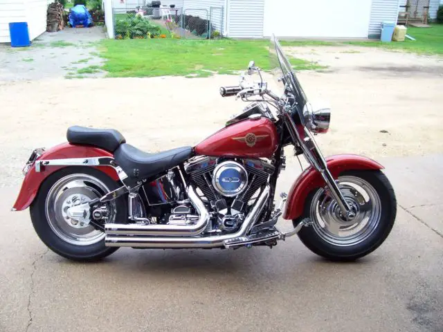 1999 Fatboy in rare Aztec Orange. This runs great and is in great shape for 16 years old.Motor has ported & polished heads reworked carb and ev-27 cam,Vance&Hines BigShot pipes.Has alot of chrome and polished Weld Racing wheels. Just changed all fluid, new brakes, ew grips,new tires new chrome controls,new battery, etachable windshield and backrest and HD Fatboy bags. This has the Fat tire kit from HD installed so you can run a 150 tire but it has a 140 on it because all tire brands differ alittle and the 150 in the tires that are on it is wider than the Dunlop that the HD shop installed and there was that much room.There are a few nick and scuffs and couple pieces of chrome is starting to pit,not that bad but I was gonna replace.There is also three seats included.I will take some more pictures tomorrow.