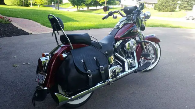 This is a 2002 Harley DavidsonHeritage Softail Springer. It has been garage kept. It has Sampson fishtail exhaust, uick release backrest, nd additional Harley Davidson chrome items. Custom tail light and license plate light, nd basket weave mud flaps. Tires are in good shape. Recent service with all synthetic fluid.