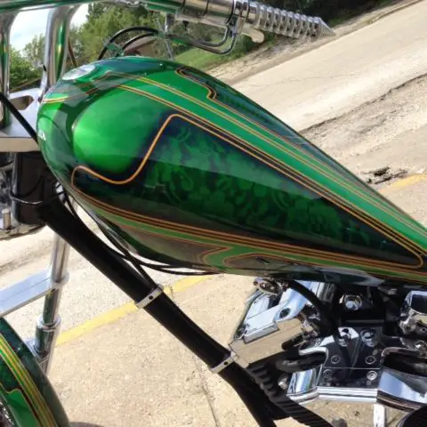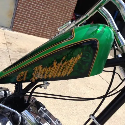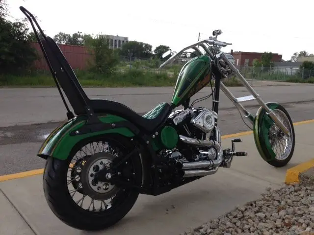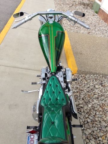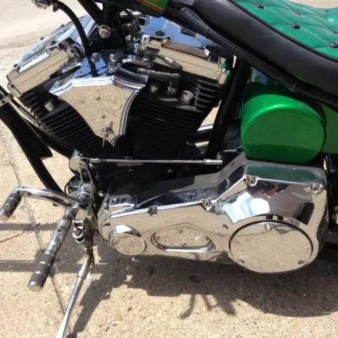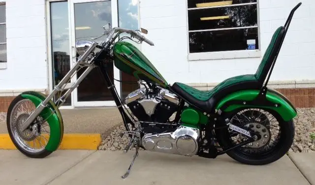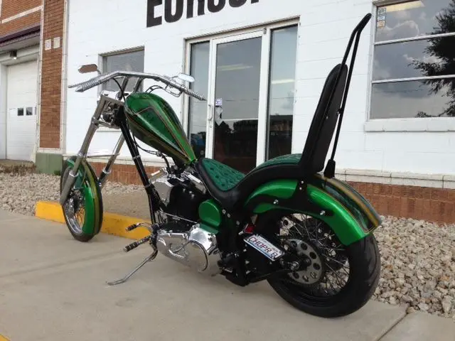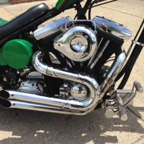 This is my 2002 Custom Softtail Retro Chopper. It has a ASM softail frame. I had new softtail shocks installed last December and currently have ridden it 400 miles. As you can tell by the pictures I had it custom painted and it looks awesome.. Engine completely rebuilt 400 miles ago. New crank, ew pistons and jugs. New oil pump. Nothing cheap about this rebuild!! First rate all the way. It was rebuilt at Vestal's Cycle shop in Springfield, l. Starts and runs great. You can ride it anywhere. New tires. Kick stand and front foot pegs have minor pitting.Ask any questio you would like. Starter button is on the starter under the right side of the oil tank.