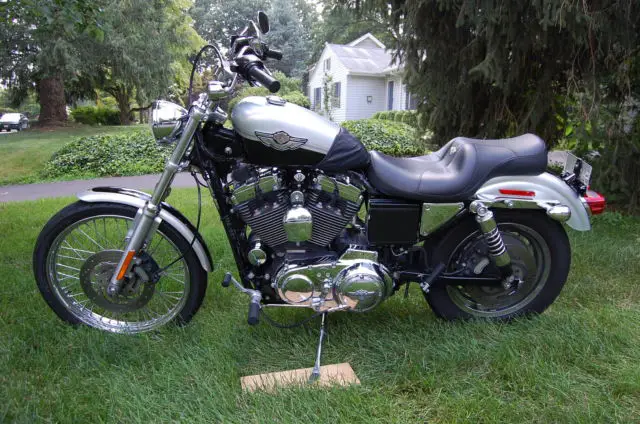 This motorcycle was purchased at a Harley Davidson Dealership by me in 2003 as new. It had 2000 miles on it and the first owner turned it back in to the dealer for a larger motorcycle. Since I purchased the bike, added Screaming Eagle exhaust, rogressive rear shocks and front springs. The motorcycle has always been gently driven by me, aintained on a regular basis and garage parked. Motorcycle has new battery and tires and brakes are good. Dealer oil change two weeks ago. Motorcycle is last of the rigid mount motors and carburetion. Parts and accessories are available from companies will list Sportsters fitting1997 to 2003.