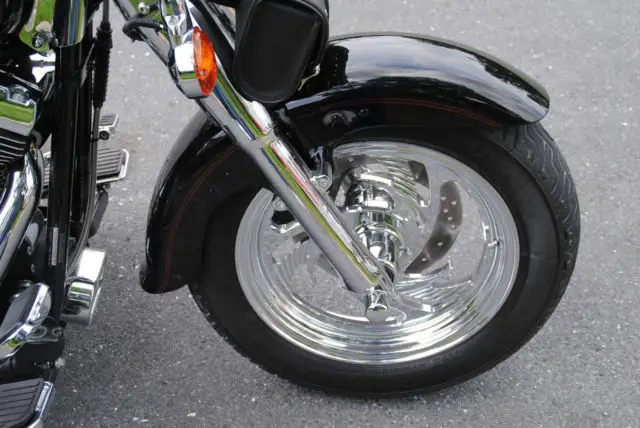 Look closely at the pictures. LOTS OF CHROME! The bike was also just serviced with oil and filter change along with the valves adjusted. To accommodate the wide rear wheel, he rear swing arm was changed and new fender installed. At the same time, he front and back of the bike was lowered. With less than 7,000 miles and garaged at all times, his bike is a real bargain at the opening bid.