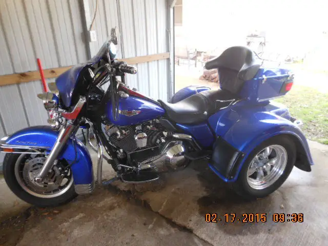 Police Edition Harley Motor Trike Kit. No reverse Blue in color with ghost flame